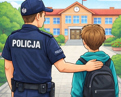 Szkoła jest miejscem, w którym dziecko ma zagwarantowane bezpieczeństwo, ochronę i opiekę, a dyrektor szkoły ponosi odpowiedzialność za uczniów w czasie zajęć organizowanych przez placówkę. Obecność Policji na terenie szkoły nie zwalnia dyrekcji z obowiązku zapewnienia uczniom bezpieczeństwa, nadzoru oraz ochrony przed działaniami mogącymi wywołać stres, zastraszenie lub naruszenie poczucia bezpieczeństwa dziecka.