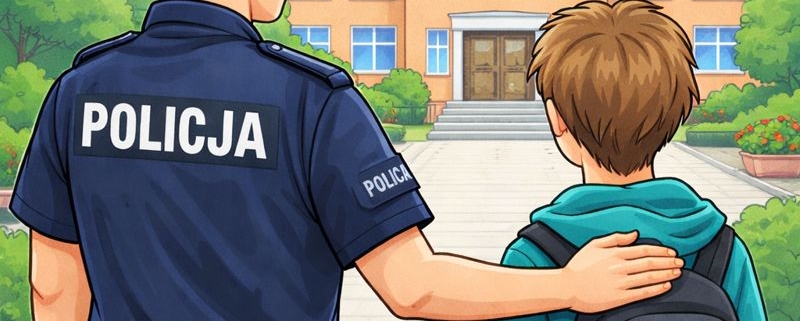 Szkoła jest miejscem, w którym dziecko ma zagwarantowane bezpieczeństwo, ochronę i opiekę, a dyrektor szkoły ponosi odpowiedzialność za uczniów w czasie zajęć organizowanych przez placówkę. Obecność Policji na terenie szkoły nie zwalnia dyrekcji z obowiązku zapewnienia uczniom bezpieczeństwa.